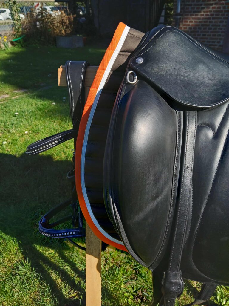 "Option D3D Liseré orange Vendue avec étrivières de dressage Devoucoux"